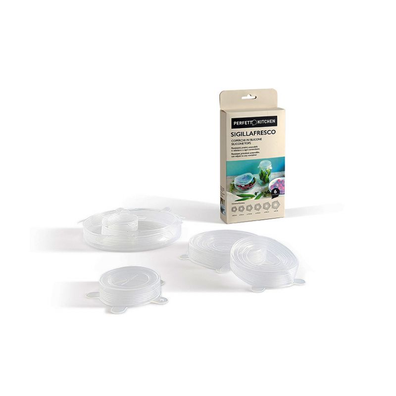 Coperchi resistenti, estensibili, si adattano a ogni contenitore. Soluzione ideale per sigillare piatti, coppe, vasi, coppette e mantenere gli alimenti perfettamente freschi. Lavabili in lavostoviglie, riutilizzabili e impermeabili.