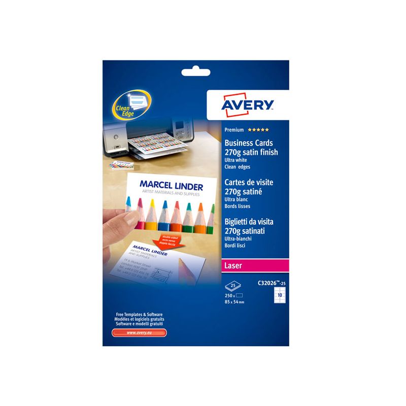 Bigl.visita Avery 250p C32026 54x85 laser/ink 270gLa tua richiesta di quotazione è stata correttamente inviata al nostro staff!