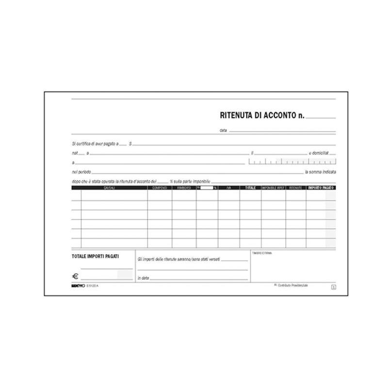 Blocco 100 ritenute acc. 15x21 DU16541C000La tua richiesta di quotazione è stata correttamente inviata al nostro staff!