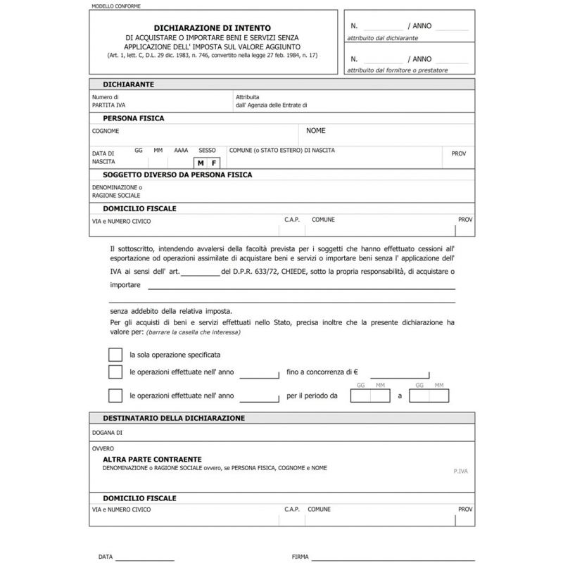 Dichiarazione d'intento Intra 24x12" 2 copie DU1881NLa tua richiesta di quotazione è stata correttamente inviata al nostro staff!