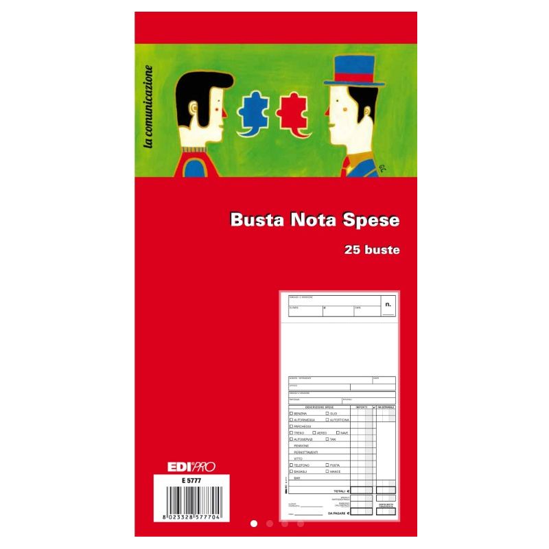 Blocco 25 buste nota spese EDIPRO 28x15cm E-5777La tua richiesta di quotazione è stata correttamente inviata al nostro staff!